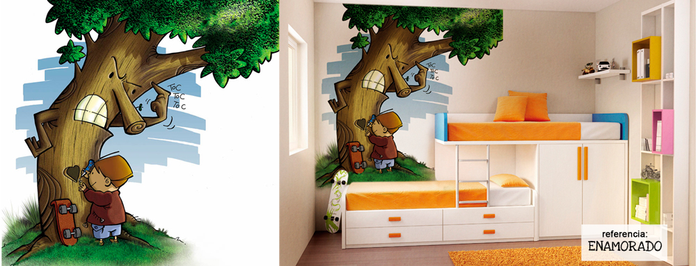 Comprobarás que los murales pueden ir pintados a mano sobre la pared, o impresos en vinilo autoadhesivo, incluso enmarcados y colgados como si fueran un cuadro.
